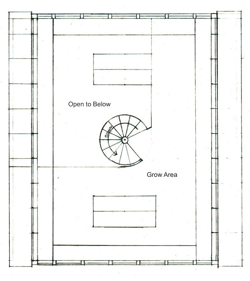 The Hut aspect of the Hut-Cut project will be a place to test on a small scale the different aspects and strategies incorporated into the larger project in The Cut. It would also be used as a local outreach location and headquarters for the whole project. Analogous to The Cut, this location will comprise education space, office space, indoor horticultural areas, a lab/workroom, outdoor garden, aquaculture, water collection, and solar panels. Replacing 50 to 70 percent of the exterior shell with transparent/translucent panels and installing a window wall on the upper south wall will create a greenhouse space for horticulture on the whole upstairs level, akin to the biosphere. These panels, like the large lightweight roof structure over The Open Cut, can integrate tempered solar panels and water collection. Education programs will use the classroom downstairs to teach the community in the same areas of interest embedded in The Cut project: environment, horticulture, gardening, mining, geology, nutrition, soil studies, composting and vermiculture. The office space would mainly be used for the project and employees and volunteers at The Hut. Outside, the west side is where a small scale aquaculture system would be set up along with a garden in view of the walking and driving public.